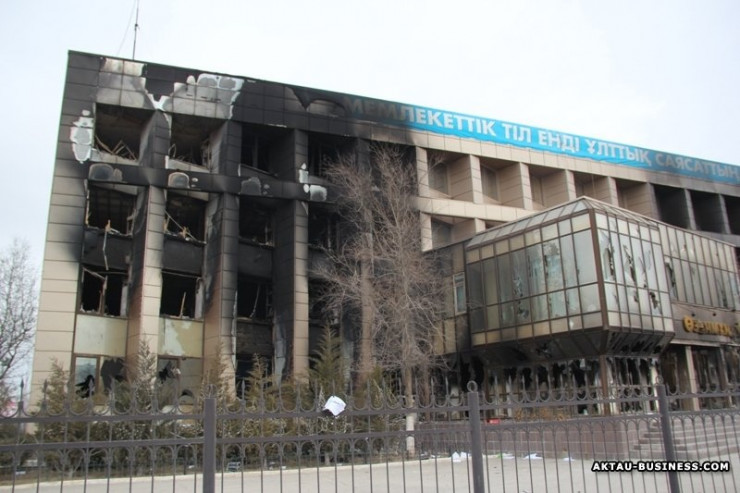 В ходе беспорядков в Жанаозене сожгли здание "Озенмунайгаза" / Фото с сайта aktau-business.com