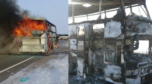 Это фото с места ДТП в Актюбинской области. Страшное происшествие случилось 18 января в Иргизском районе на трассе Самара - Шымкент. Автобус с 55 пассажирами и двумя водителям загорелся на ходу. Пятерым удалось выбраться из полыхающего транспорта. 52 гражданина Узбекистана погибли на месте. Самому молодому из них было 19 лет. Автобус ехал из поселка Жибек Жолы Сарыагашского района Южно-Казахстанской области до Казани.