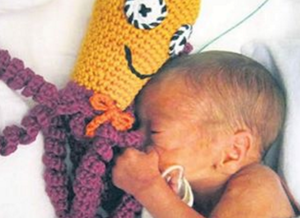 Волонтеры клуба "28 Петель" отмечают, что все связанные вещи не только согревают теплом, но и радуют малышей своим цветом. "Когда ребенок видит ярко-оранжевый или красный цвет, то начинает работать его мозг. Мы недавно внедрили игрушку осьминожка. Это открытие пришло к нам из Дании, а адаптировала игрушку для России и Украины компания "Раненько". Мама недоношенного малыша придумала, что нужно связать осьминожку и положить ему в кювез, и ребенок успокоился. Почему? Потому что в утробе матери ребенок цепляется за трубы, а у осьминожки есть такие щупальца, он за них схватился и успокоился. Вот сейчас тоже вяжем этих осьминожек и дарим врачам", - добавила основатель проекта.