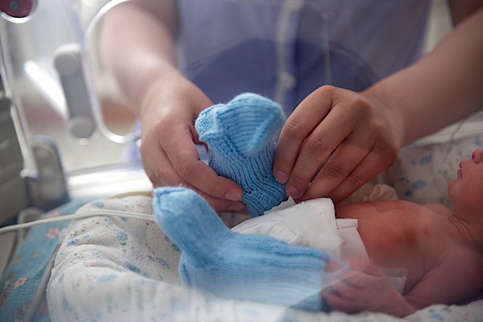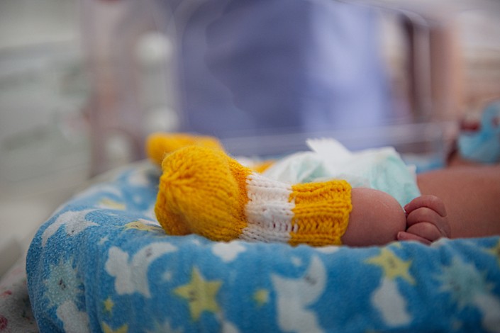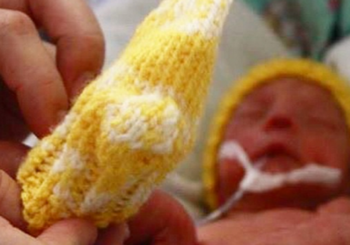 В центр принесли вязаные вещи для малышей, родившихся весом в 500-800 граммов. Таких новорожденных выхаживают в отделении неонатологии. Кроме медицинской помощи и соблюдения температуры в кювезе, куда помещают недоношенных детей, им необходимы шерстяные вещи. Вязаные носочки, шапочки и кофты помогают крохам в буквальном смысле выжить.