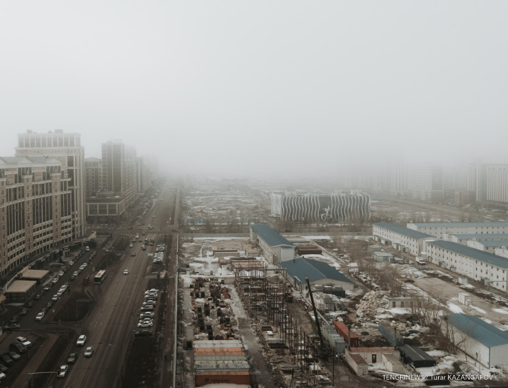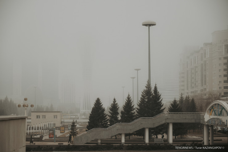 Фотограф Tengrinews.kz показал, как выглядит столица, накрытая белой пеленой плотного тумана.