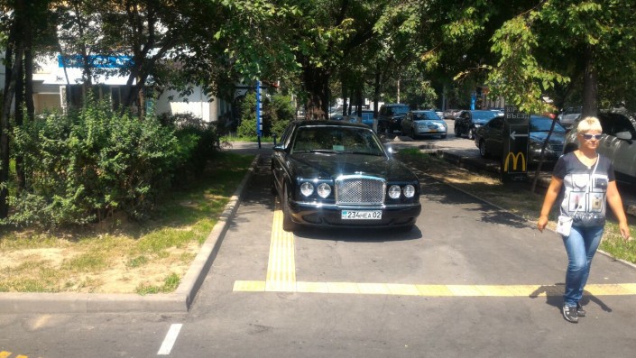 Начнем с Алматы. В этом городе роскошные авто встречаются нередко да и в самых разных местах. Так, в редакцию прислали фото Bentley, припаркованного близ недавно открывшегося Mcdonalds прямо на тротуаре да еще и на дорожке для слабовидящих. Фото было сделано в июле.