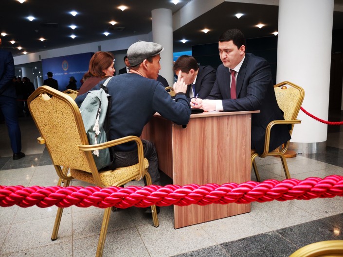При виде большой очереди казалось, что Султанов здесь будет сидеть до вечера, но в какой-то момент аким ушел. Его подчиненные всех уровней продолжали принимать граждан.
