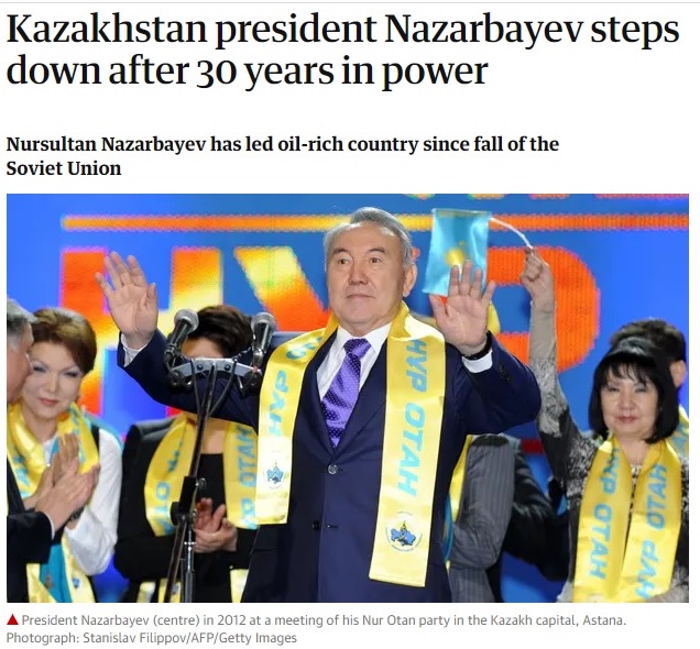 Британское издание The Guardian отмечает, что уход Назарбаева может стать примером для других глав государств СНГ. Журналисты считают, что подобным образом может поступить Владимир Путин.