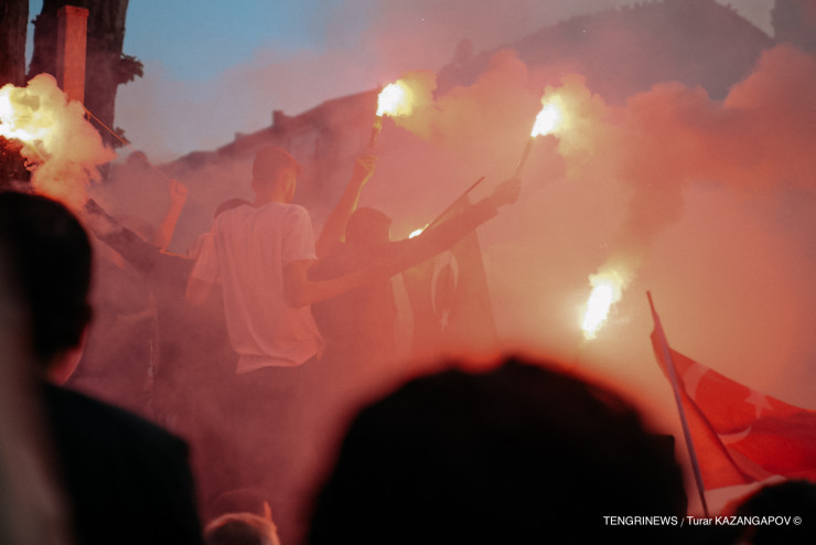 В некоторых местах образовалась давка. Фотокорреспонденту Tengrinews.kz с трудом удалось приблизиться к площади, где выступал президент Эрдоган.
