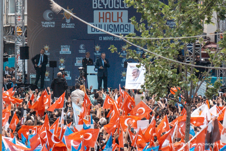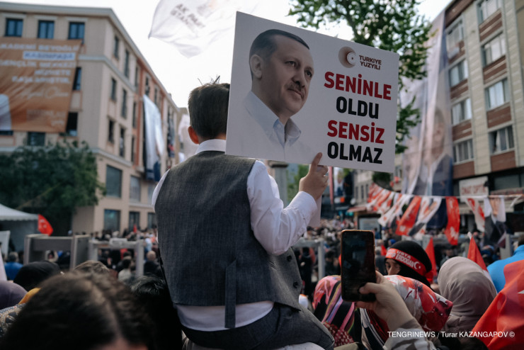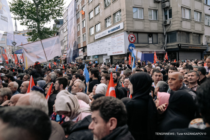 Фотокорреспондент Tengrinews.kz наблюдал за ходом многотысячного митинга в поддержку Эрдогана, который состоялся в Стамбуле накануне президентских выборов.
