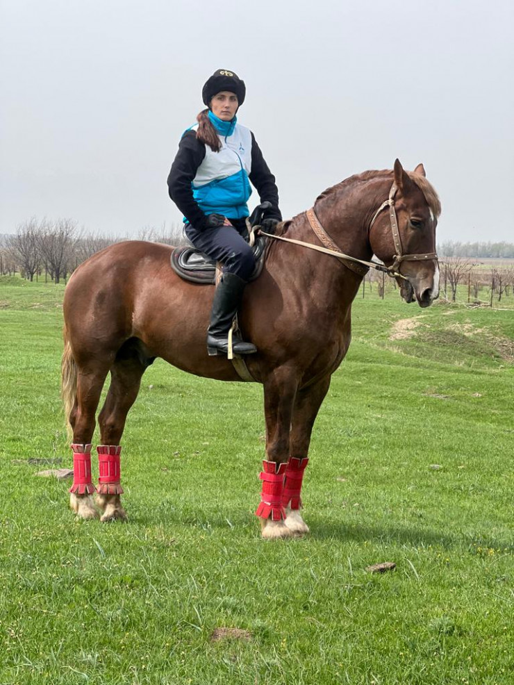 Всех озвучивать не буду, но на данный момент Самсон. Это конь, на котором я сейчас езжу. Хорошего коня я сама покупаю за большие деньги, недешево: есть данчаки, буденновские, поляки, костанайские, есть чистопородные, есть помесные, данчак с рысаком, или костанаец с рысаком, или поляк с рысаком.