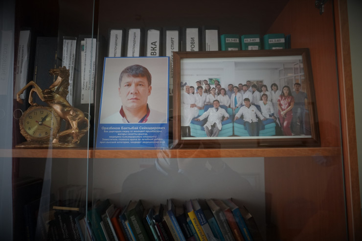 "До меня заведующим хирургическим отделением был Олжабай Мусаипович Кожагалиев. Он скончался от коронавируса. Это было в четверг, он вышел с операции и почувствовал себя плохо. На следующий день у него поднялась температура, он должен был оперировать, но попросил нас провести операцию. Компьютерная томография показала пневмонию с 50-процентным поражением легких. Он изолировался, лечился стационарно, его перевели в городской инфекционный центр, там он скоропостижно скончался", - рассказывает Ерлан Омаров.