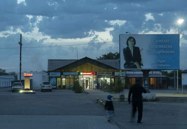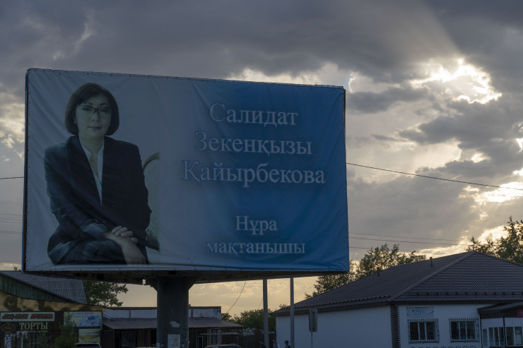 На одном из перекрестков вы обнаружите два изображения - потрет мыслителя из прошлого - Абая, нарисованный на здании, и фотографию государственного деятеля уже современного Казахстана - Салидат Каирбековой, которая встречает всех прохожих с билборда.