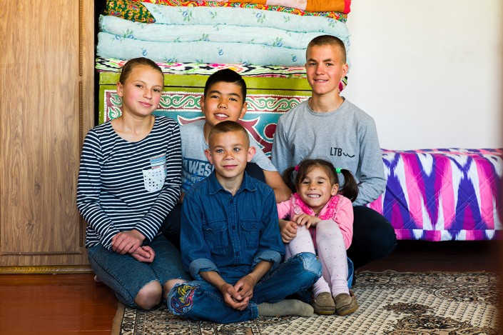 Слева от Айбола Алена, ей 13. Ниже на фото 13-летний Валера и 6-летняя Жасмин, они брат и сестра.