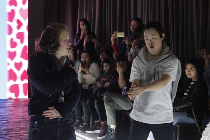 В пол были вмонтированы световые дорожки, чтобы задать направление движения участникам дефиле. Педагоги учили детей не бояться новой обстановки: света, музыки, видеоряда на экране за их спинами, множества зрителей в зале. Во время дефиле один малыш увлекся вспышкой камеры и не хотел уходить: сотрудница центра продефилировала к нему, мягко взяла за руку и увела его за кулисы. То, как он спокойно отвлекся и ушел, это тоже большое достижение. Или как Алина танцевала фламенко - она попадала в такт, в ее танце была энергия. Для ребенка с ограниченными возможностями - это невероятное достижение. Конечно, в этом есть большой вклад и их родителей. Спасибо им за их ежедневный труд.