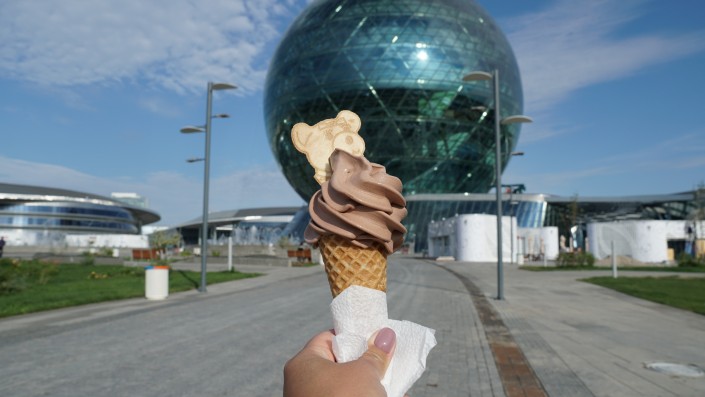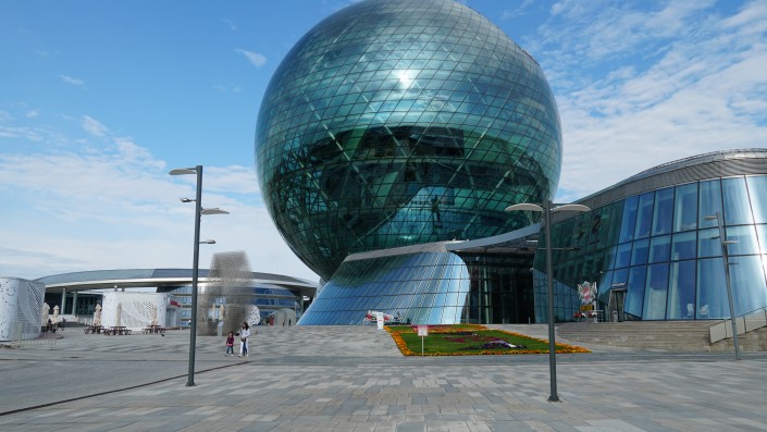 После завершения выставки на территории работают несколько объектов. Среди них - сфера "Нур Алем".