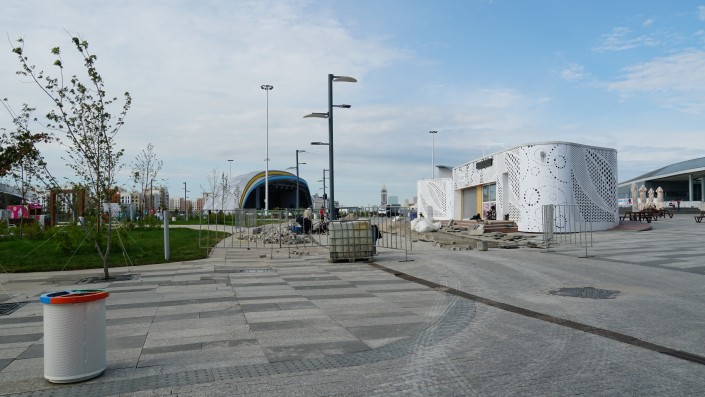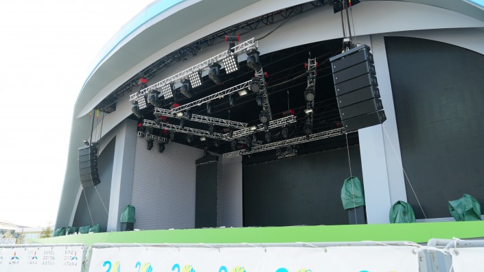 Вместо амфитеатра на территории EXPO установили сцену.