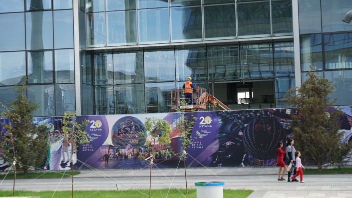 Офис Международного финансового центра "Астана" мы так и не нашли. Возможно, в связи с ремонтными работами финцентр еще не переехал на территорию EXPO.