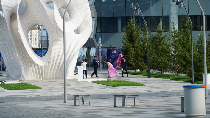 Плюсы свободного доступа и локации выставки, кажется, оценили свадебные фотографы, делающие снимки молодоженов на фоне архитектурных сооружений EXPO-2017.