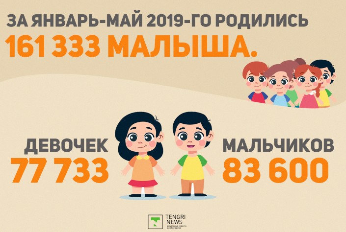 По рождаемости в период с января по май 2019 года лидирует Туркестанская область. Здесь родилось 21 876 детей. В тройке лидеров по рождаемости также Алматинская область - 20 318 детей и город Алматы - 13 800.