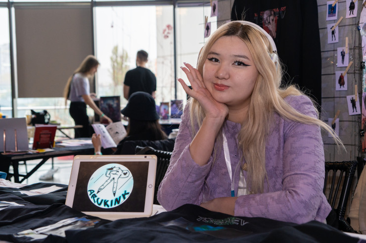 На Almacon Аружан представила свою коллекцию стикеров, значков, футболок, свитшотов, толстовок и сумок-шоперов. "Хотела бы поблагодарить медиахолдинг "Телерадиокомплекс Президента РК" за то, что помогли мне принять участие в Almaсon", - заключила девушка.