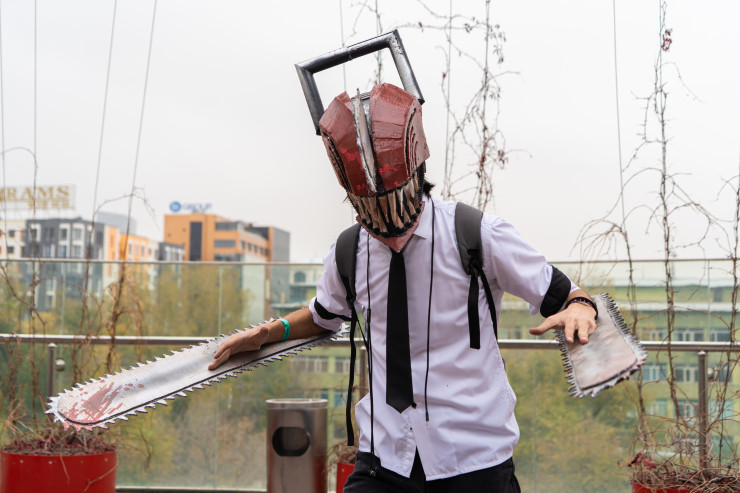 - Вам удобно в этом костюме? - спрашиваем у молодого человека в образе Человека-бензопилы.