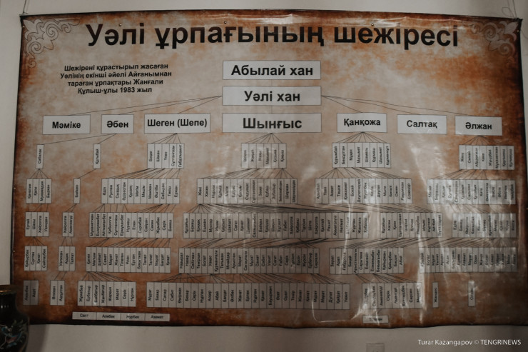 Родословное древо (шежире), которое начинается с Абылай хана. Здесь же можно найти и имя нынешнего директора музея Уалихана Кулбаева.