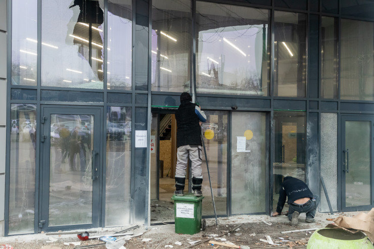 Магазины спортивной одежды и косметики стали объектом мародеров.