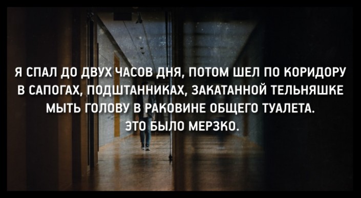 Я жил в звукозаписывающей студии: ночевал на диване, умывался в общем туалете. Когда я начал употреблять, то мне неважно было - есть душ или нет. Главное, что есть еда, что употребить и где спать. И нет контроля.