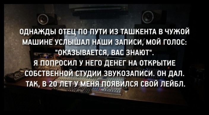 После переезда в Алматы мы с братишкой некоторое время жили без родителей. Тогда я впервые узнал, что такое свобода, когда нет родительского контроля. В колледже я увлекся рэпом, начал записывать песни на казахском. Мне говорили, что у меня хорошо получается читать рэп, отмечали крутую дикцию, необычный голос. Я питался этой похвалой. Опять меня кто-то хвалит со стороны - и мне это нравится. Сейчас я понимаю, что это про низкую самооценку. Но тогда считал себя крутым.