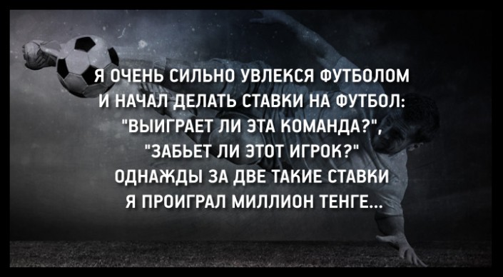 Случайно я вспомнил, что один человек должен мне десятку. Начал ему названивать, он смог отдать пятеру. 2 000 тенге залил в бак, 3 000 тенге - открыл логин в букмекерской конторе и положил на счет. Я считал себя идеальным математиком, который идет против системы...