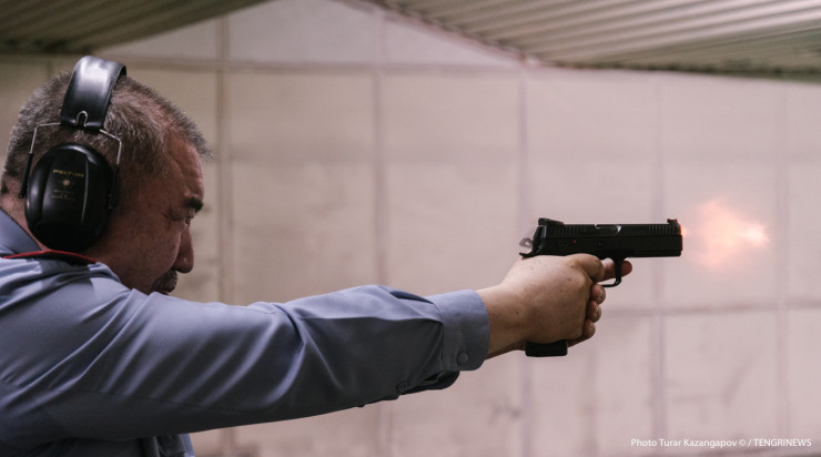 В последний раз министр был в тире зимой, а применял пистолет в работе 10 лет назад. Тем не менее 10-ку на мишени Тургумбаев выбил.
