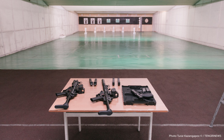Ерлан Тургумбаев дал нам своебразный мастер-класс по стрельбе из пистолетов двух видов и пистолета-пулемета MP5, которые используют в спецподразделениях полиции.