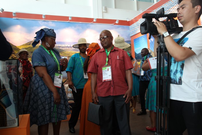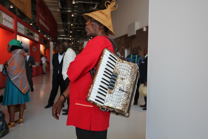 В тот день в африканском павильоне отмечали сразу два события - День африканских женщин и Национальный день Королевства Лесото. Эта страна расположена в горной местности, в ней проживают порядка двух миллионов человек, а символом государства является вот такая шляпа.