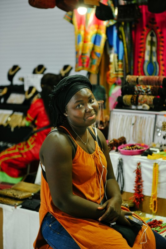 "Они все уже устали от фото, потому что каждый пятый приходит и фоткается с ними. Некоторые люди подходят и даже без спроса фоткаются на их фоне", - говорит молодая девушка из Казахстана. Она помогает африканцам продавать товары.