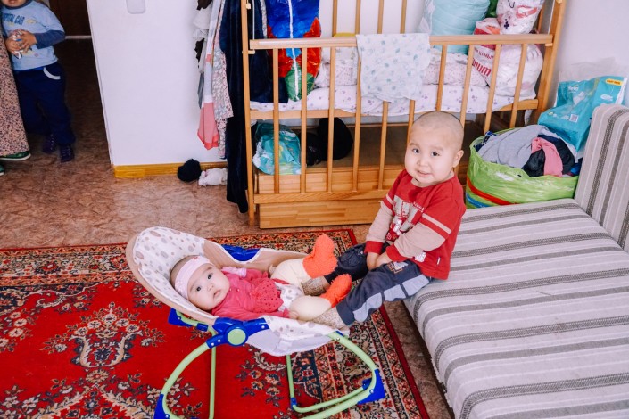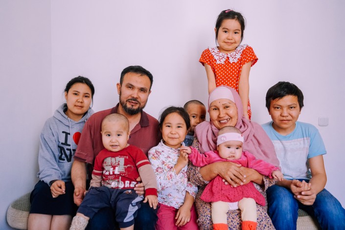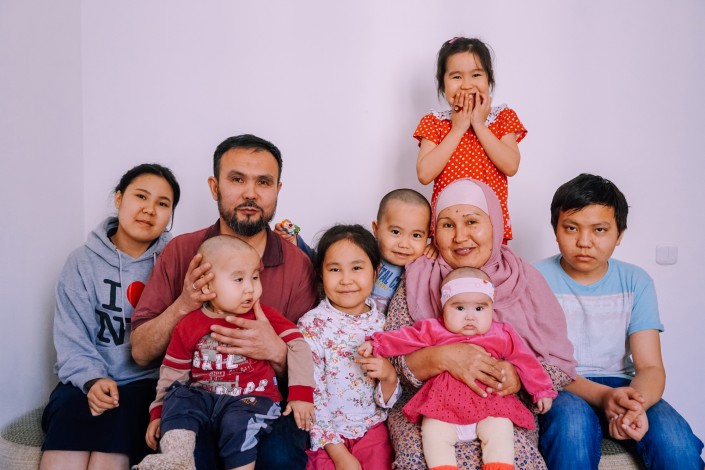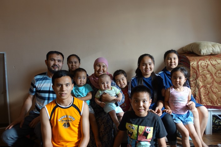 Нижнее фото из архива Ерлана и Маржан. На них десять детей: Аслан, 20 лет, Жасулан, 19 лет, Айгерим, 17 лет, Қаракөз, 15 лет, Ботакоз, 15 лет, Мухаммед Ильяс, 12 лет, Бибінұр, 7 лет, Айша, 5 лет, Омар, 4 года, Абдурахман, 2 года. Одиннадцатый ребенок - дочь Сафия, которой сейчас четыре месяца, на тот момент еще не родилась.