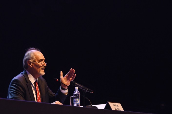Но у иностранной прессы все равно было много вопросов. И в какой-то момент, чтобы их остановить, глава делегации сирийского правительства, постоянный представитель Сирии в ООН Башар Аль-Джафари сам начал брать интервью у репортеров.