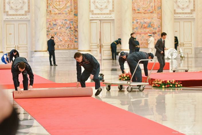 Теперь же ковровые дорожки собирали, грузили на тележки и увозили в неизвестном направлении. Вместе с ними убирали и подиум, на котором еще недавно стояли президенты Казахстана и Беларуси.