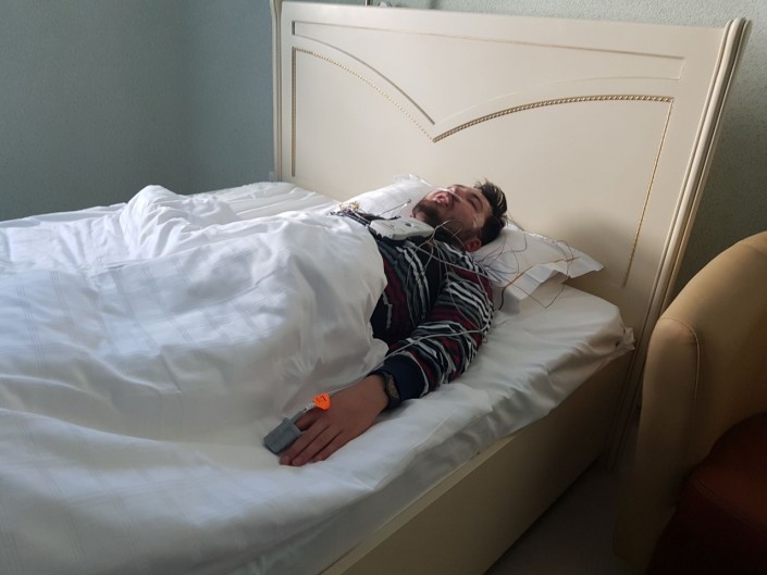 Человек приходит клинику вечером, проходит собеседование, ложится в кабинете на удобную кровать. Далее к нему крепятся специальные датчики, которые снимают около 14 показателей, пока пациент спит.