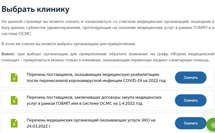 Выбрать клинику пациент может самостоятельно из перечня на сайте Фонда медицинского страхования. А именно: