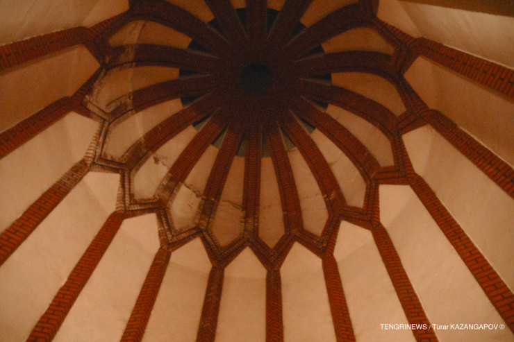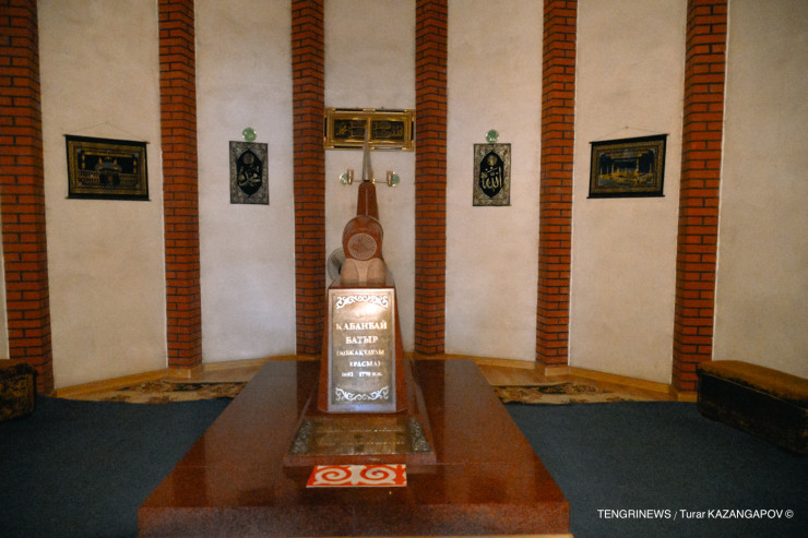 Намного лучше состояние мавзолея внутри. Видимых повреждений вокруг захоронения Кабанбай батыра нет.