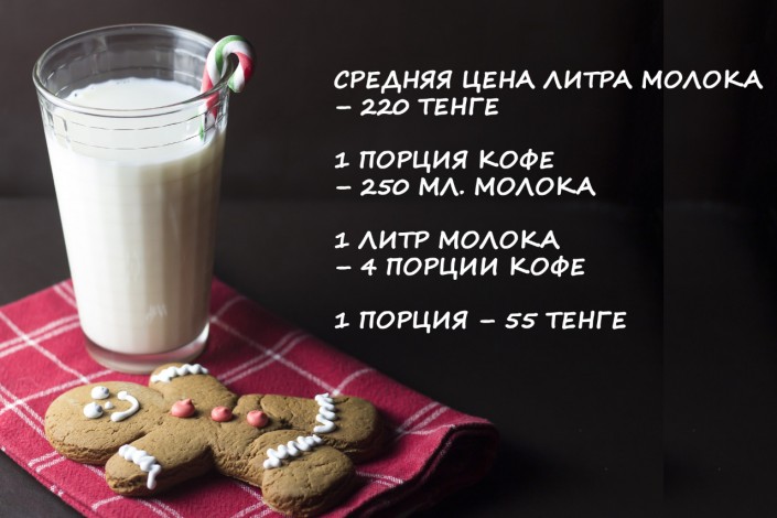 1 порция молока - 55 тенге.