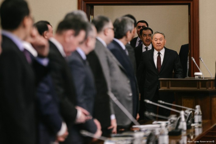 "...Актюбинская область, Астана. Вставайте все. Стойте, пока доложите", - обратился к акимам Назарбаев.