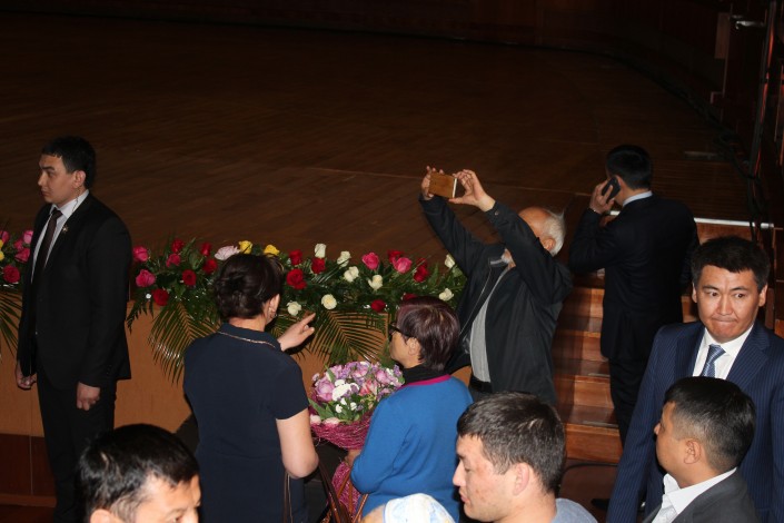 В какой-то момент возле выхода можно было увидеть пожилого человека - актера из Китая Го Цзюлуна, сыгравшего эпизодическую роль сингапурского президента Ли Куан Ю, как известно, этот политический лидер был большим другом Президента Казахстана.