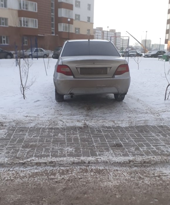 По словам автора этих фотографий (внизу), водитель Daewoo Nexia утром 19 января припарковался на детской площадке во дворе дома № 16 по улице Азербаева в Астане. "И это при том что бордюр почистили", - отметил столичный житель.
