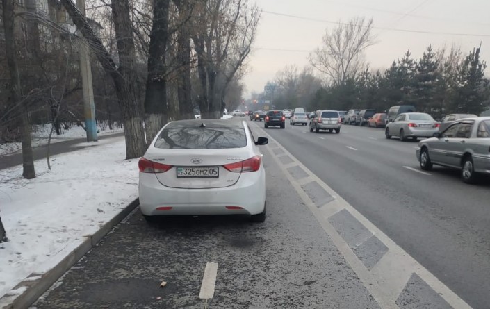 А 8 января около 17.00 очевидец снял на камеру Hyundai Elantra, водитель которого оставил авто на велодорожке по Шевченко между улицами Манаса и Ауэзова.