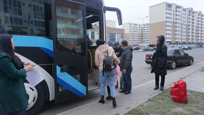 "С начала проекта перевезли уже 1244 человек, и вот сегодня перевозим еще 55, 27 из них - трудоспособные члены семьи, остальные 28 - дети, всего 15 семей", - рассказывает специалист центра занятости города Экибастуза Айгуль Шабекова.