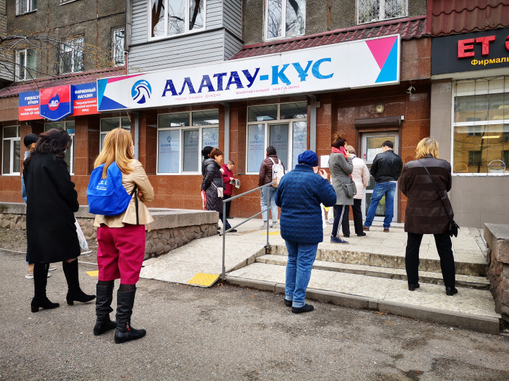 В магазин впускают по пять человек. Как выглядит теперь обычный день в Алматы Фото ©Ренат Ташкинбаев