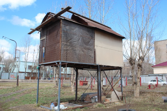 За забором видны канистры, пластиковые тары и кастрюли, которые местные жители, по всей видимости, подготовили к лету.