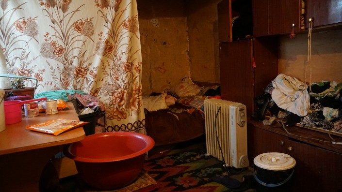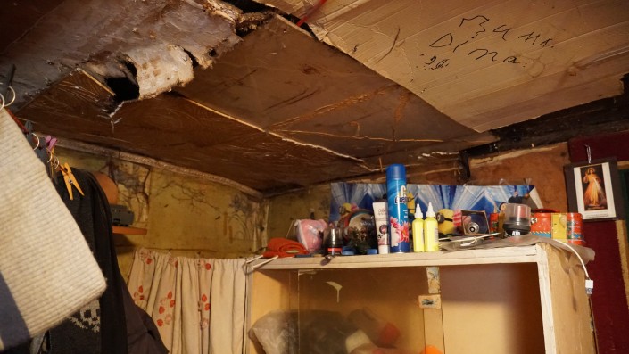 "А перед тем как в сарай пойти жить, мы комнату снимали в саманке за 25 тысяч, холодную, там мыши на лицо падали. А потом, в мае, уже невозможно было: насекомые, пол проломленный, туалет под окном течет, вонь такая стоит - ужас. Я говорю, пойдем лучше в сарай, чем 25 тысяч за такое платить. И вот, детям кровать поставили, а сами на полу, на угле постелили тряпки какие-то, вот так и жили, даже не помыться, все грязные. Да это и не передать", - вспоминает Алла Вячеславовна.