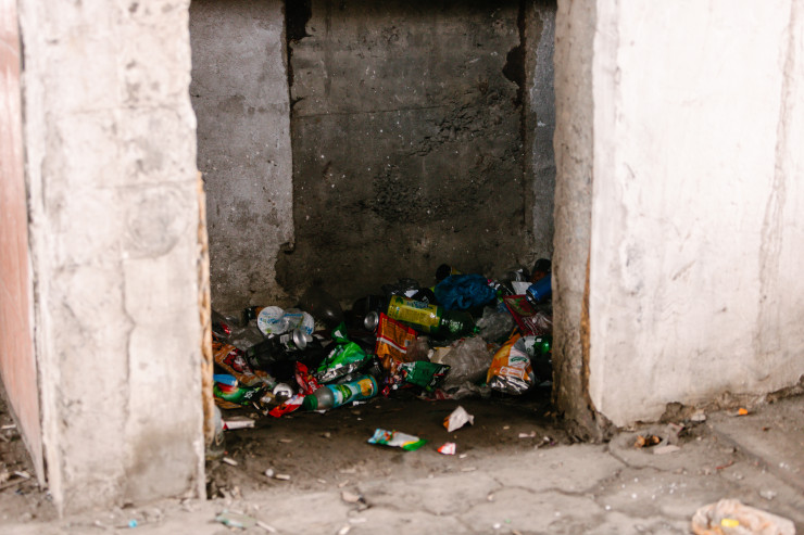 Помимо грязи, здесь много мусора.