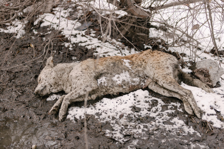Первое, что бросается в глаза, - это трупы животных: кошек и собак.