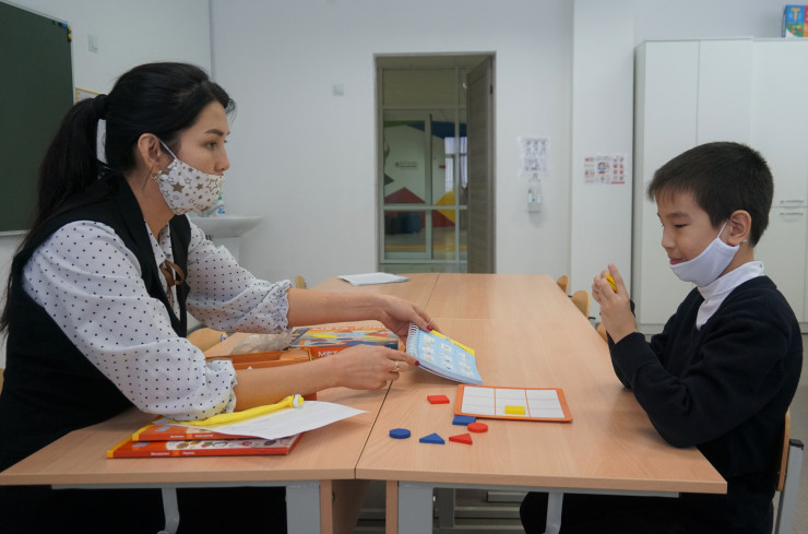 "К сожалению, некоторые навыки потерялись в процессе дистанционного обучения весной, потом были летние каникулы, и получается, когда они к нам вернулись, нам пришлось заново это все восстанавливать", - рассказывает специалист кабинета поддержки инклюзии Адилия Капизова.