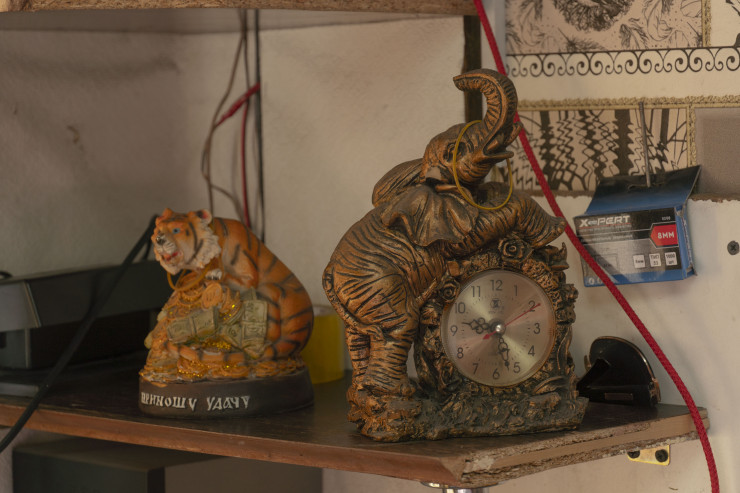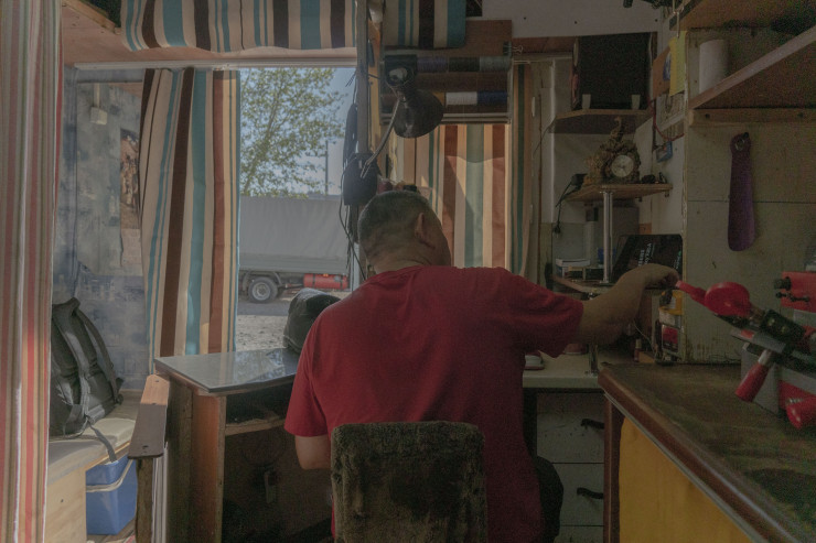 На этих кадрах - вторая мастерская Жанболата, всего у него их три. Как правило, большую часть времени он проводит в этом небольшом вагончике. Как и в том помещении, о котором мы упомянули в самом начале репортажа, в вагончике тоже рационально использован каждый сантиметр.